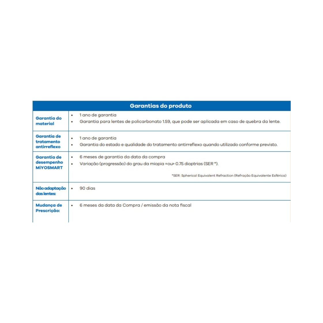• 12 meses de garantia para mudança de grau igual ou superior a -0.75